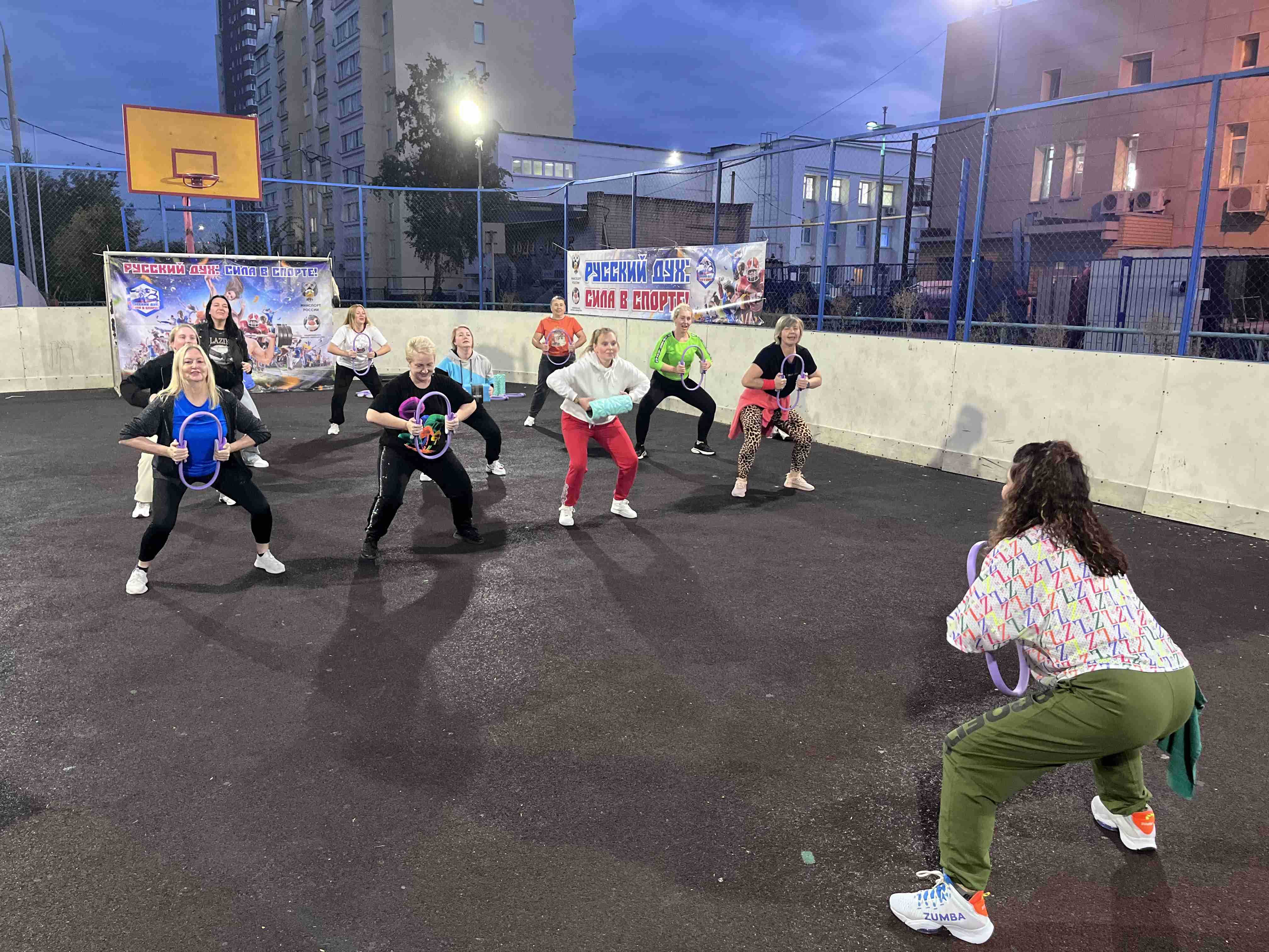 19 сентября в рамках реализации проекта министерства спорта РФ и при поддержке национального фитнес-сообщества «Русский дух: сила в спорте!» на спортивной площадке ЖК Белозёрский прошёл Зумба марафон с тренером фитнес клуба Gold’s Fitness Золотая Миля Риммой Михайлиной.